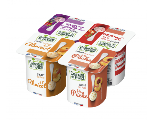 Yaourt aromatisé fruits CAMPAGNE DE FRANCE 500g Lot de 4 pots de 125g - Colis de 12 lots Voir le produit