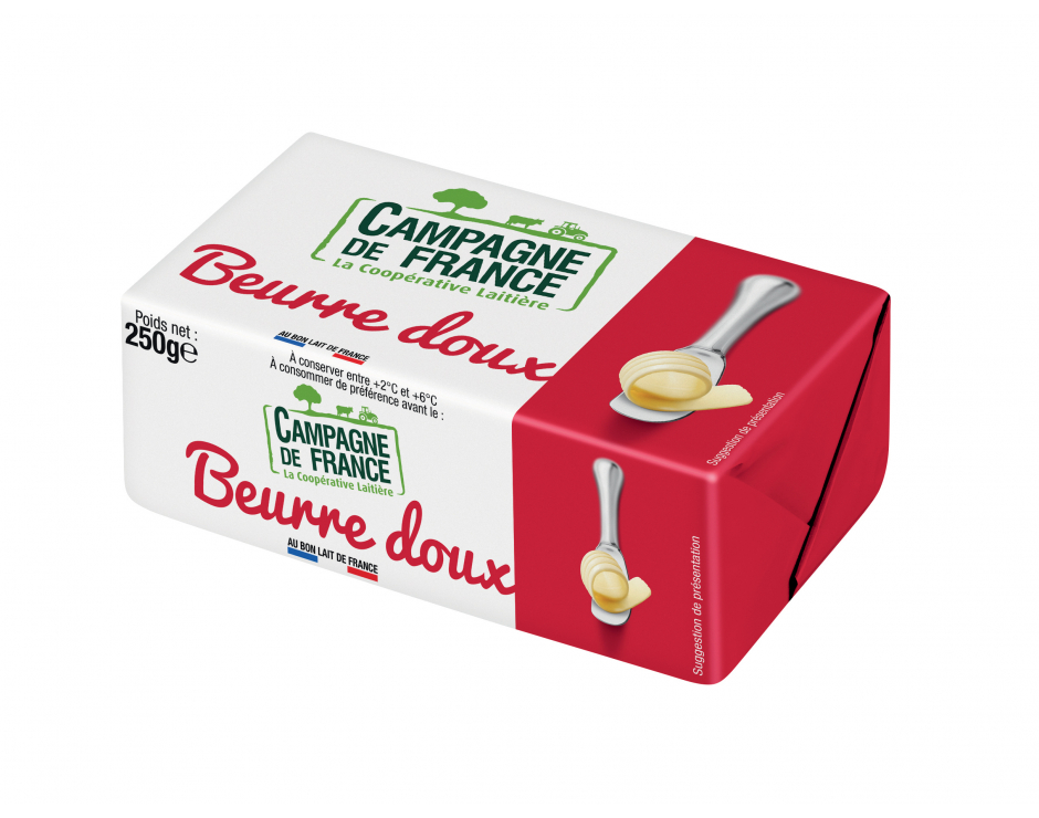 Disponible pour : Chef de cuisine Consommateur Grossiste Voir tous nos Beurres Goût fin, délicat, Facile à tartiner. Utilisation en cuisine ou en pâtisserie. Graduations de 25g sur l'emballage pour faciliter le portionnement. Informations Allergènes : Lait Poids : 250g Conditionnement : Plaquette de 250g - Colis de 40 pièces Achetez ce produit chez un revendeur Les recettes associées Tarte endives & Camembert 20min. Facile Saumon confit au beurre, céleri rave en différentes textures 30min. Facile Voir toutes les recettes