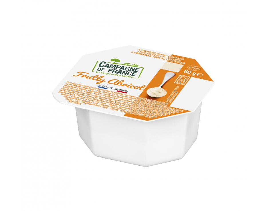 Fromage frais au lait écrémé pasteurisé* 73,1%, sucre 10,1%, crème pasteurisée*, eau, abricots 5,2%, amidon transformé, épaississant : pectine, correcteurs d'acidité : acide citrique - citrate de sodium, arômes, conservateur : sorbate de potassium, colorant : extrait de paprika. *Origine : France.