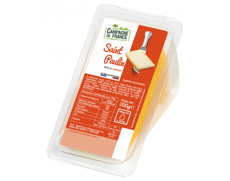 LAIT* pasteurisé, sel, ferments lactiques (LAIT), conservateur: natamycine (LAIT), colorant de la croûte: rocou. *Origine: France.