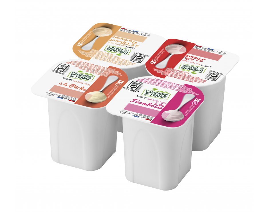 LAIT entier 82,8%, sucre 7,9%, fruits (fraise 5%, framboise %, fruits rouges 5%, pêche 5%, nectarine 5%, mangue 5%), lactose et protéines de lait, amidon modifié de maïs, arômes naturels, jus de carotte concentré, épaississant: gomme guar, jus de carotte noire concentré, correcteur d'acidité: acide citrique et citrate de sodium, concentrés de raisin rouge et de carotte noire, ferments LACTIQUES