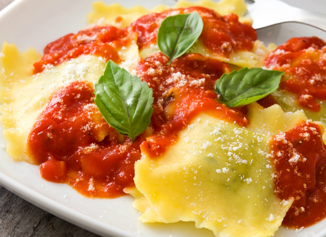 •Mettez de l’eau à bouillir dans une grande casserole avec du sel. Plongez-y les ravioles pendant 3 à 4 minutes. Égouttez-les à l’aide d’une écumoire et servez immédiatement avec la sauce tomate et le parmesan râpé.