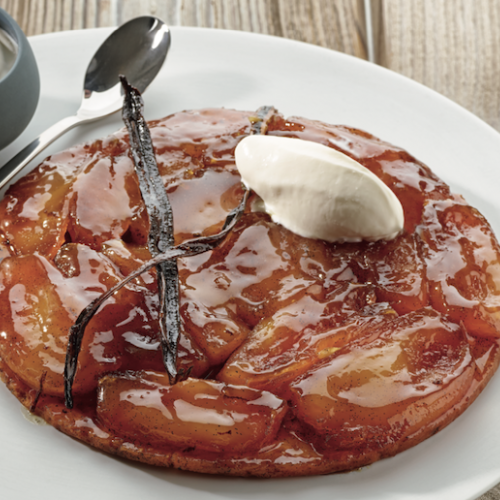 •Au moment de servir, posez le disque de pâte sur les pommes et réchauffez quelques minutes au four chaud, démoulez et servez avec de la crème fraîche.